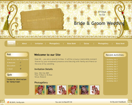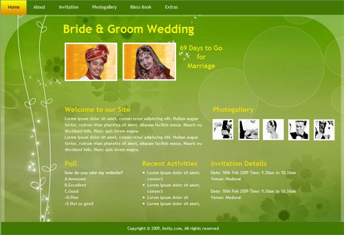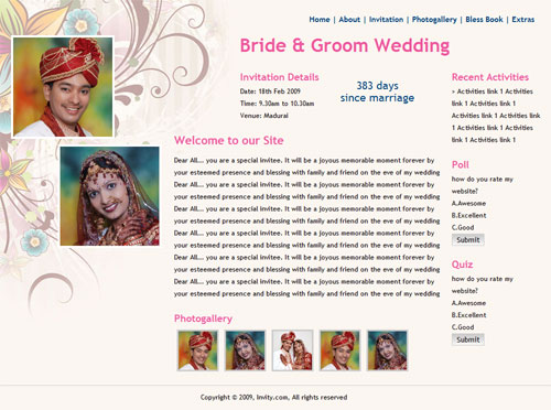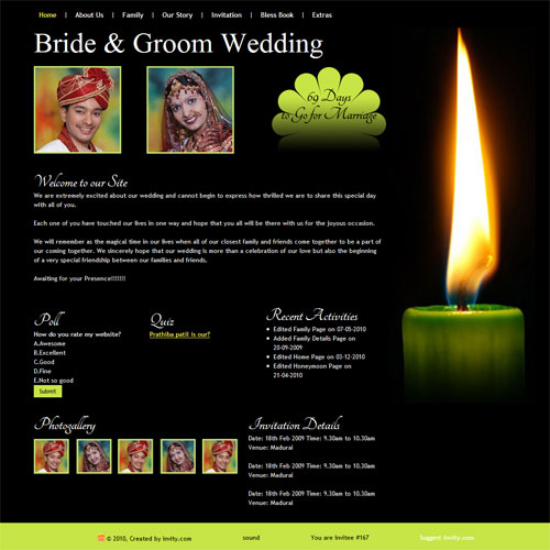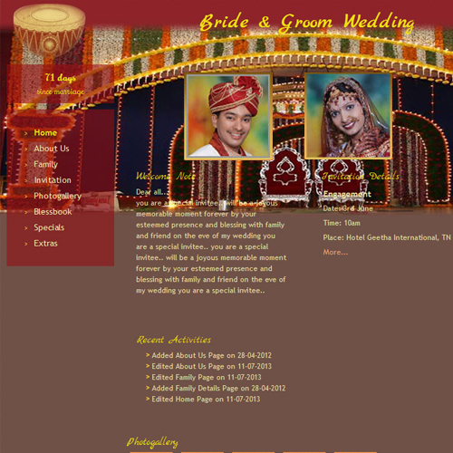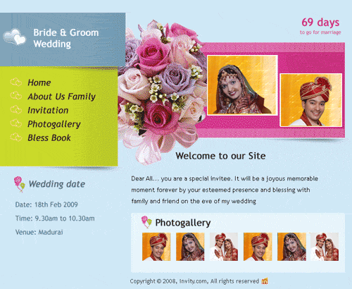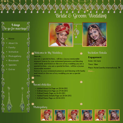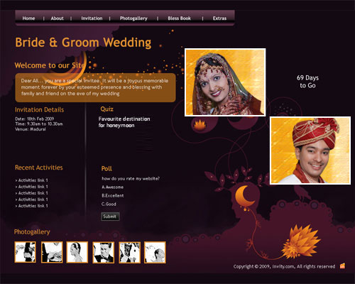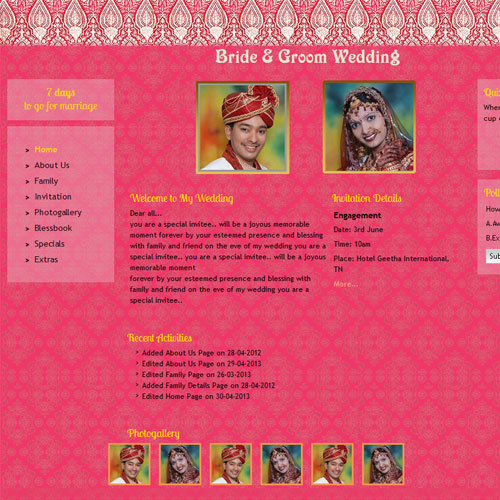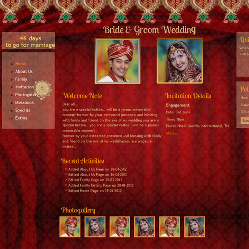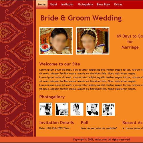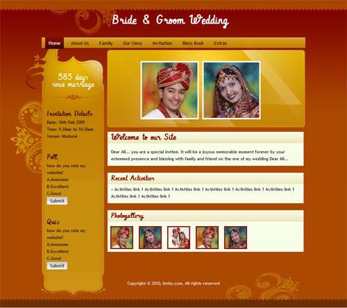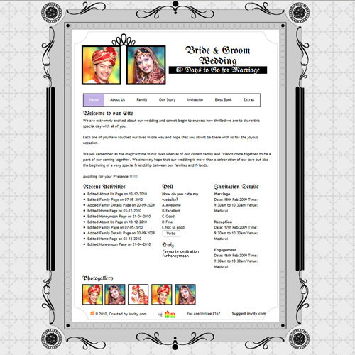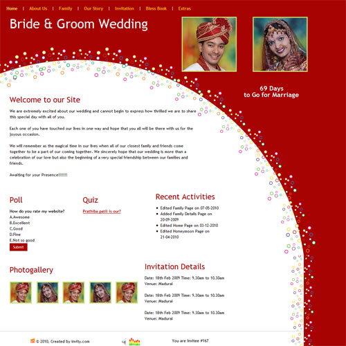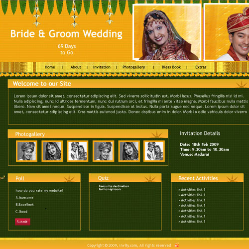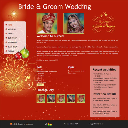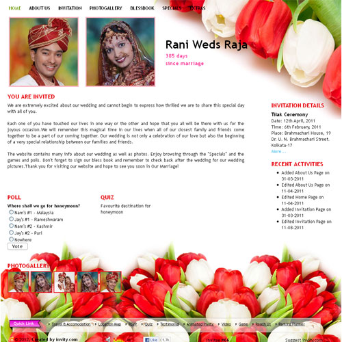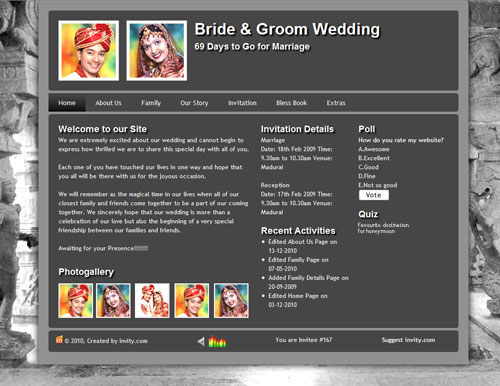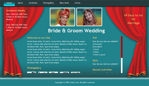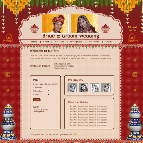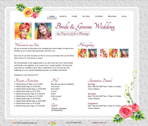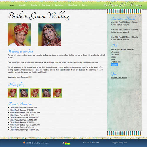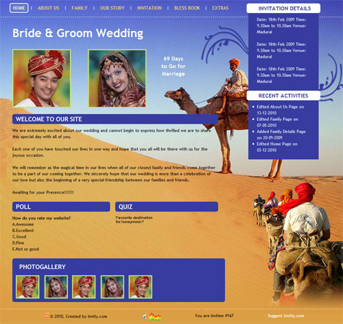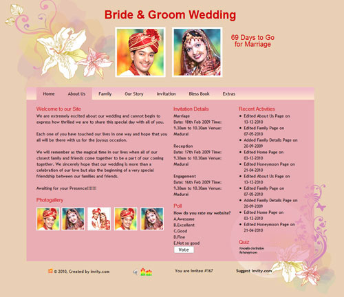 A marriage is a beautiful occasion that we want to share with the world. What better way can there be than to do it online through your own wedding website?. invity.com is a wedding website platform with many beautiful themes to choose from, so that you can create your own personalised Indian ethnic online wedding invitation for inviting all your guest.