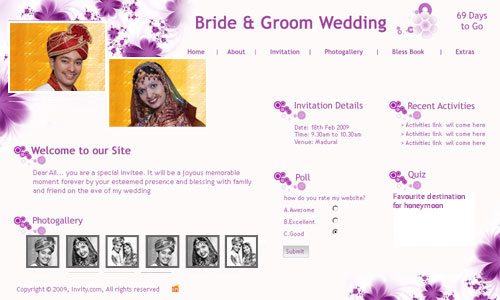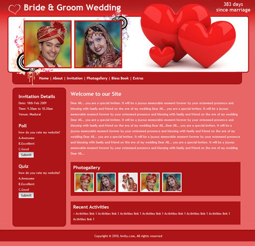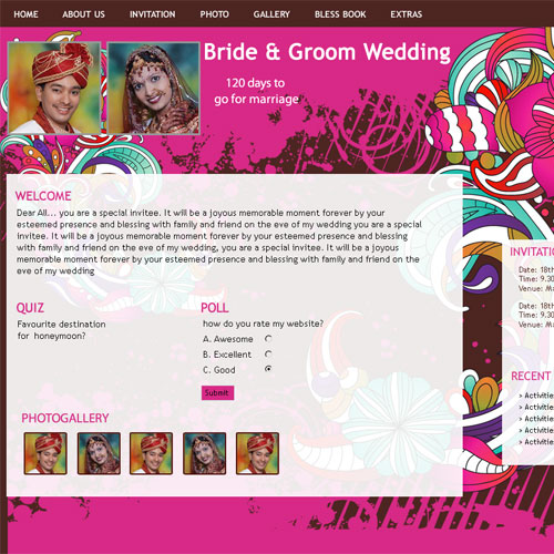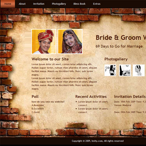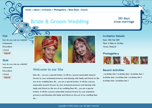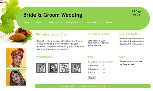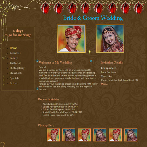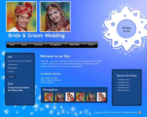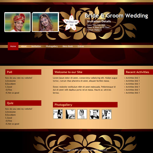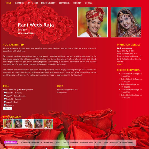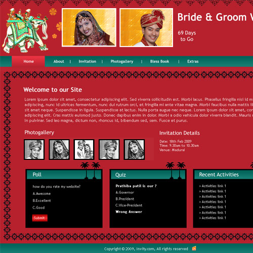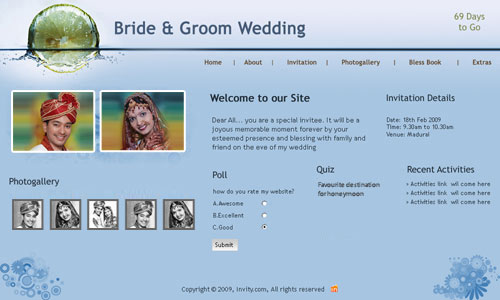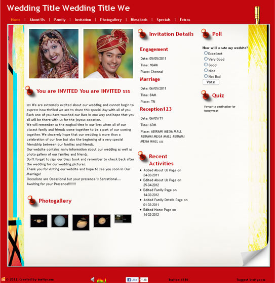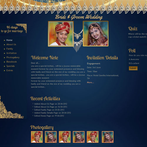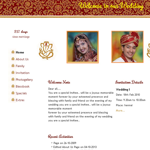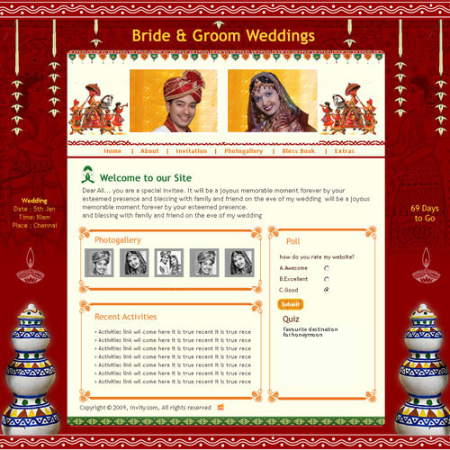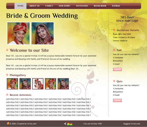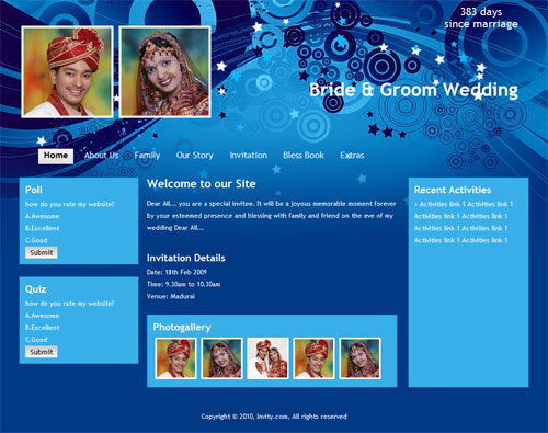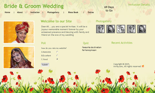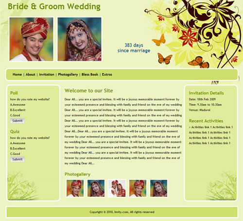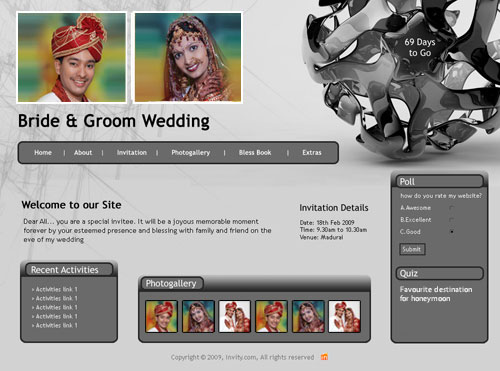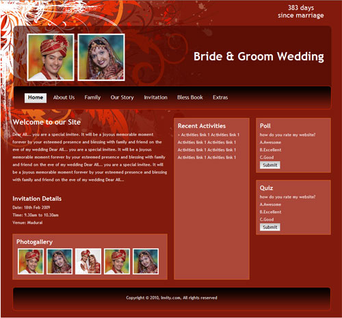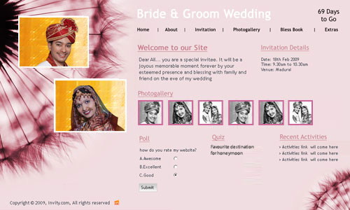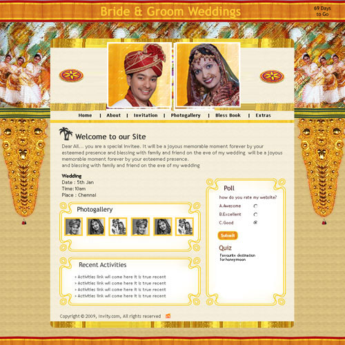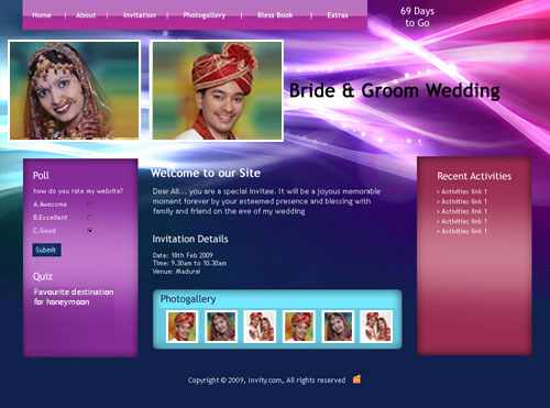 A marriage is a beautiful occasion that we want to share with the world. What better way can there be than to do it online through your own wedding website?. invity.com is a wedding website platform with many beautiful themes to choose from, so that you can create your own personalised Indian ethnic online wedding invitation for inviting all your guest.