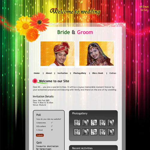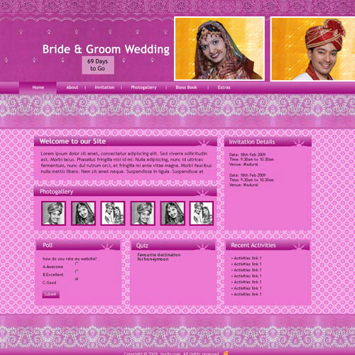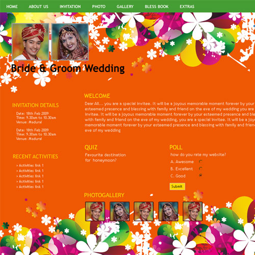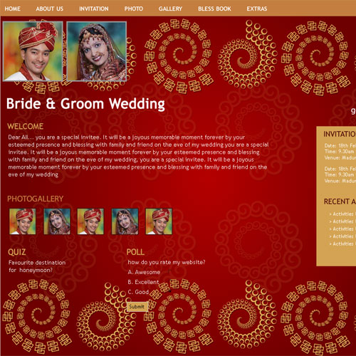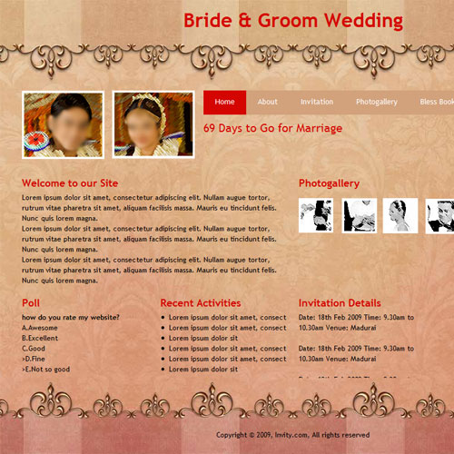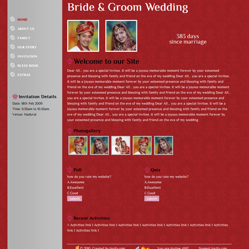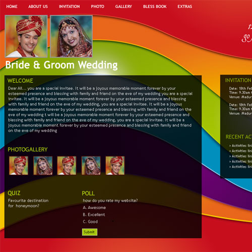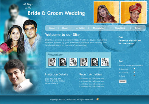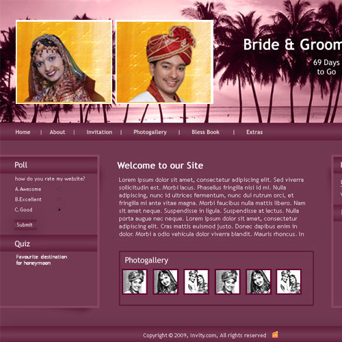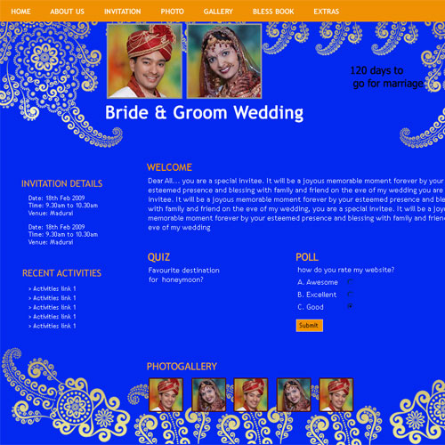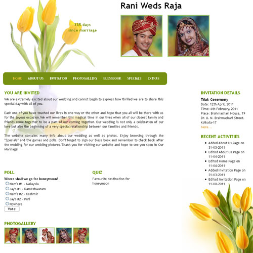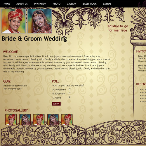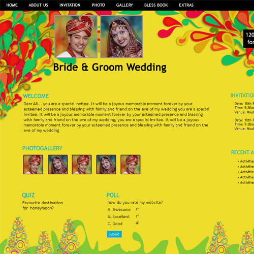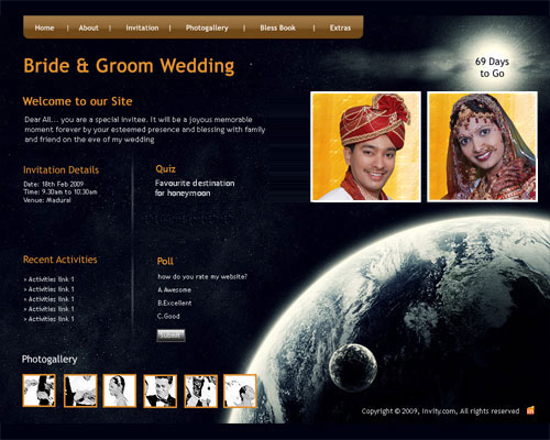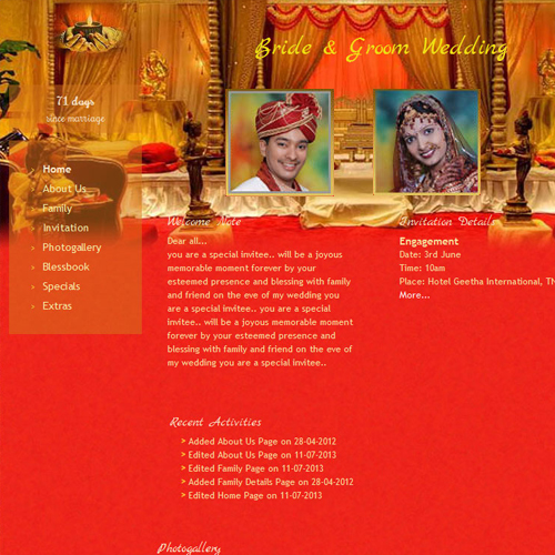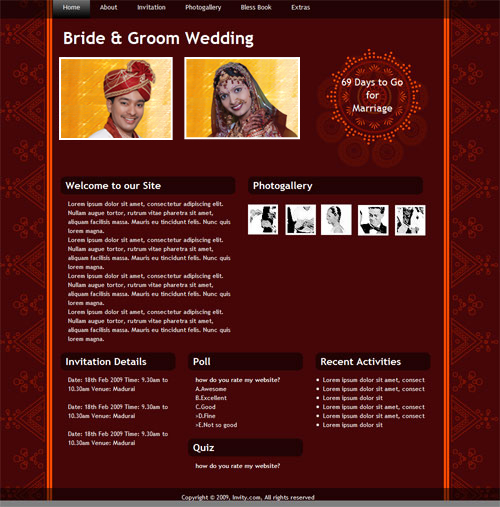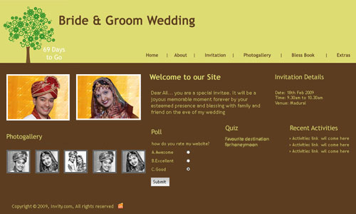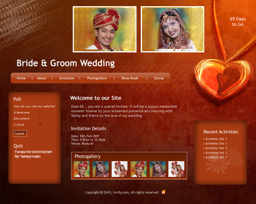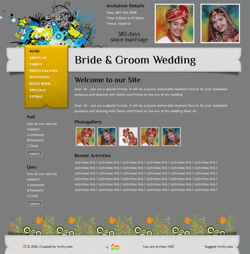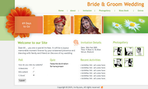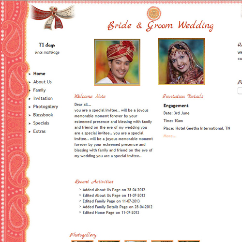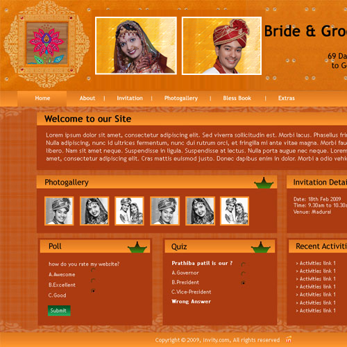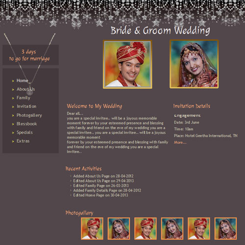 A marriage is a beautiful occasion that we want to share with the world. What better way can there be than to do it online through your own wedding website?. invity.com is a wedding website platform with many beautiful themes to choose from, so that you can create your own personalised Indian ethnic online wedding invitation for inviting all your guest.