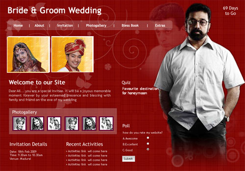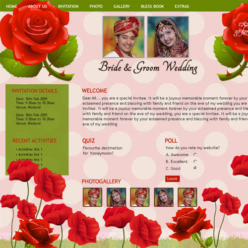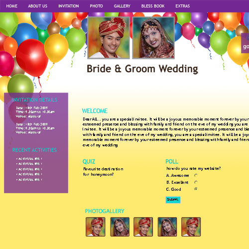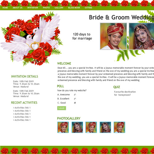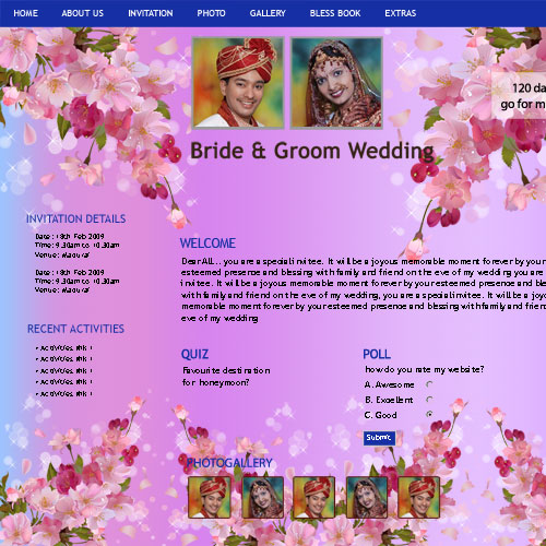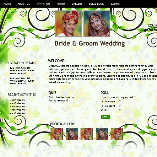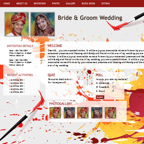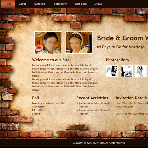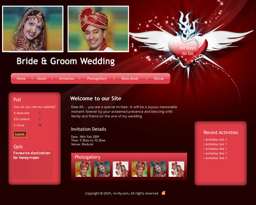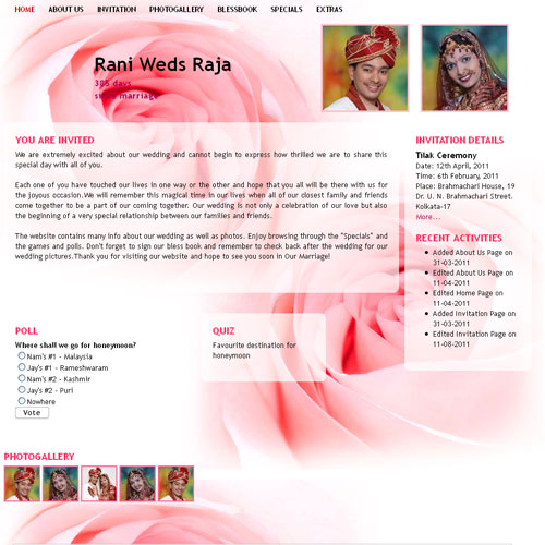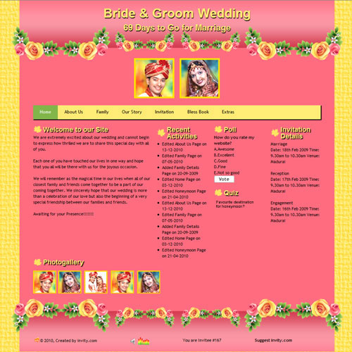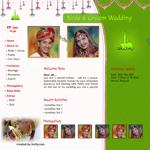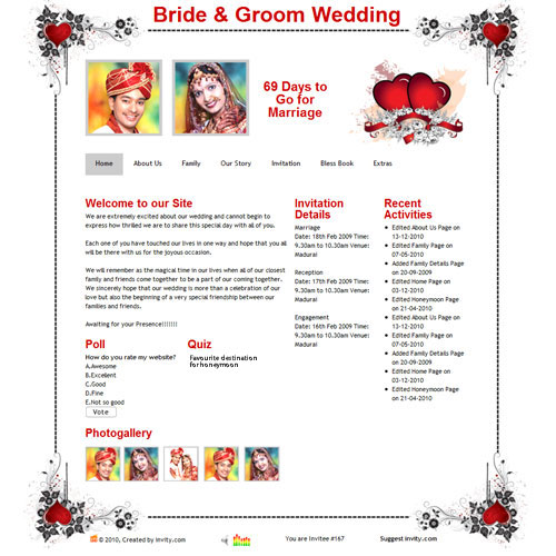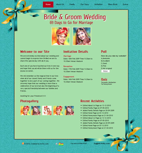 Through invity.com, you can share wedding details, wedding photos, receive blessings, send SMS and email invites and do more.